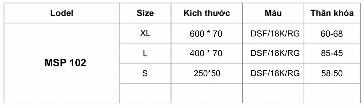 | Màu sắc | Vàng (18K), Rêu (DSF), Đỏ (RG) |